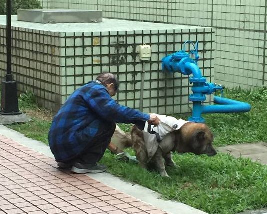 歐吉桑也好老了,牽著狗,一整個互相陪伴走過長遠歲月的革命情感