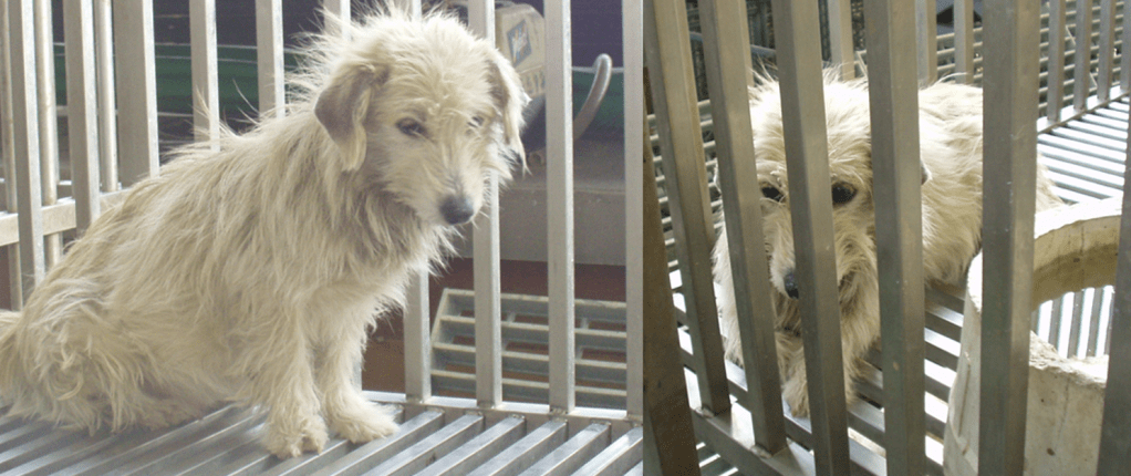 比對照片,原來我們在二月初就拍過牠的照片,但在層層湧動多如潮浪的難犬當中,骯髒憔悴內向閉塞的牠,在收容所內就像個淡薄的影子,能見度等於零。那是台灣動保史的黑暗時代,收容所暗不見光。
